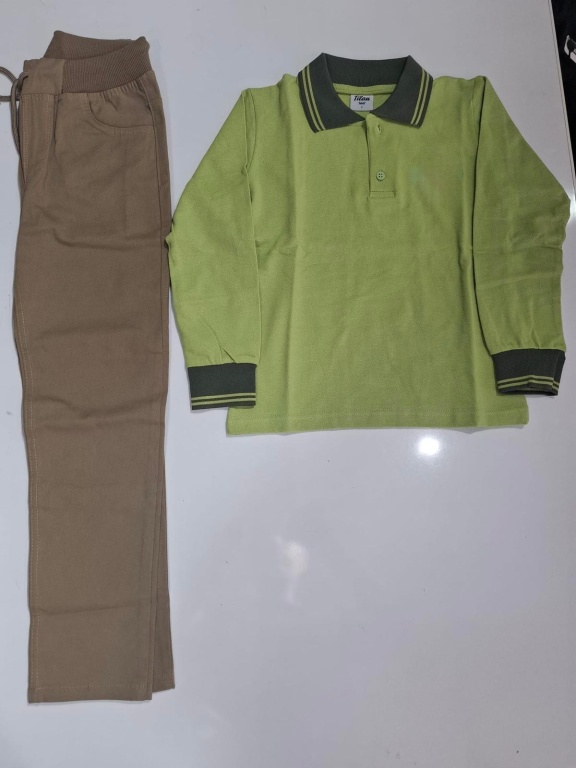 Erkek veya kız fark etmeksizin pantolon standart bej olacaktır. Üst giyim kısa veya uzun kollu yeşil renktir.